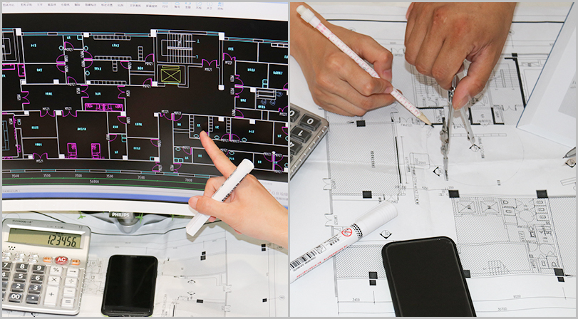 每承接一個工程,公司都會派出經(jīng)驗豐富的技術(shù)團(tuán)隊上門勘察、實(shí)地測量,提供工程設(shè)計方案。測量各個房間尺寸及造型情況,做好記錄,做到心中有數(shù)。